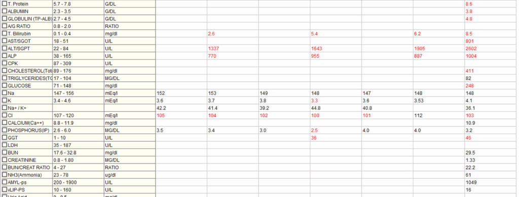 퇴원 당시 혈액검사 결과 / 출처: 강서 YD동물의료센터